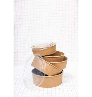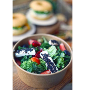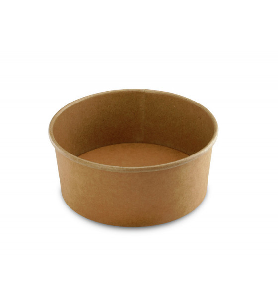 Ultra-strong round tub made from kraft and PE, suitable for takeaway sales. A PP lid (sold separately) ensures safe transport while providing perfect visibility of contents CPOK155