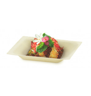 Eco-designed, eco-friendly square wooden plate, packaged in 500. Oven and microwave safe. The Cubik Bois range is available in 4 sizes to help you compose different meal trays: - ACB18: 180x130xh15 mm, lid ACC18 - ACB13: 130x130xh15 mm, lid ACC13 - ACB10: 100x100xh15 mm, lid ACC10 - ACB65: 130x65xh15 mm, lid ACC6