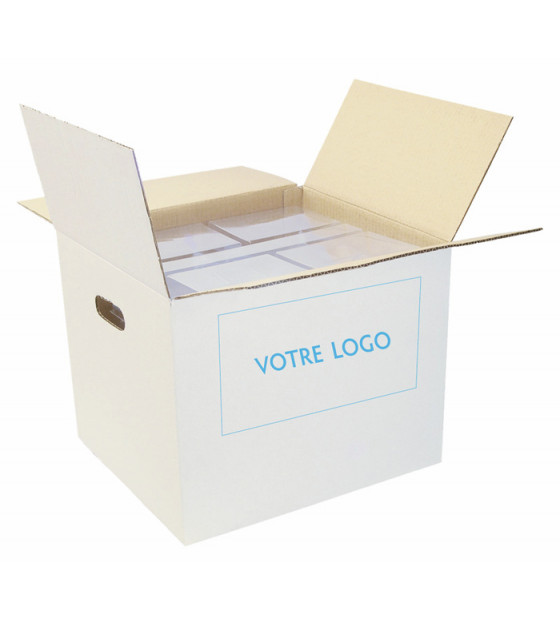 White grouping box with pre-cut side handles.