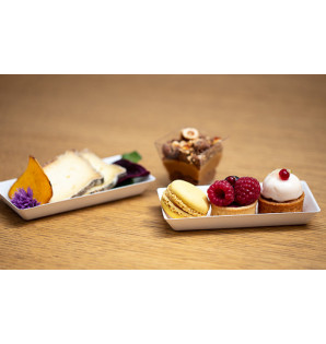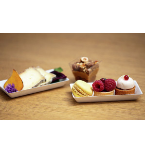 The Cubik range of plates is also available in crystal or black PS, in bamboo, in wood and in cardboard.