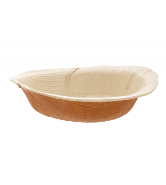 Round dish made from palm leaf sheath. This 100% natural material, with no treatment or additives, is waterproof and heat-resistant: oven and microwave safe.