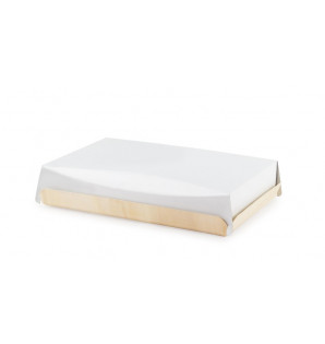 White cardboard lid to be inserted in the Madera PMB24 tray. Enables stacking and protects contents during transport. Its practical 45 mm height is ideal for generous appetizers.