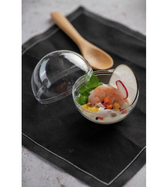 This 5cl spherical mini container features a lid with three micro-perforations to prevent fogging.