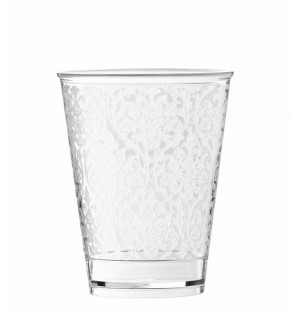 Transparent 6cl flared glass jar with an elegant baroque motif. Suitable for freezing, it closes with a transparent lid CBK6 . Also available in black VB6N and black 14 cl VB14N .