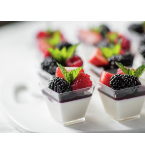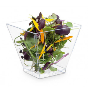 Square PS ramekin with beautiful, clean lines. Made in France, it can be reused and recycled. The Cubik range comprises: MCU60C : crystal MCU60N : black MCU60 : water green