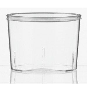 Rounded, transparent 15 cl container, can be used as a verrine or in glass, to be placed on one of our meal trays. Made from high-quality PS, the Comptoir tumbler is washable, reusable and recyclable at the end of its life. It can be combined with an RPET CMG15 lid and placed in the freezer. Comptoir models are also available in 5 cl MNC5 and glass XGV016 .