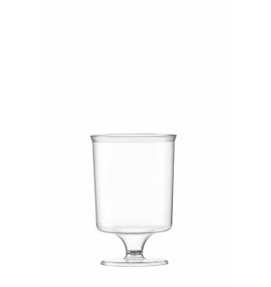 Transparent stemmed glass with a diameter of 57 mm for use in takeaway meal trays. It's also perfect for organising wine tastings.