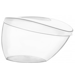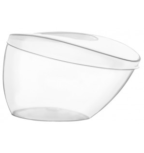 Prix €46.00 HTConditionnement : 100BGC5525 cl transparent PS bowl with beautiful undulating curves. A practical lid, adapted to its original shape, has a flat surface for presentation and vertical storage. -