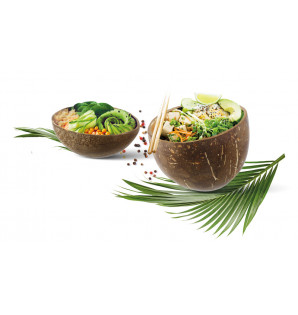 Prix €198.75 HTConditionnement : 120BCC110Round, deep bowl made from real coconut. With a slightly flat base, it offers good stability and will add an exotic touch to your dishes. As a natural product, its dimensions may vary. 2 capacities are available: 15 cl BCC110 25 cl BCC80 -