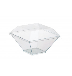Prix €49.10 HTConditionnement : 100BCU55CSquare salad bowl with a wide opening. Made from transparent PS, it is recyclable. The Cubik range of bowls comes in 3 sizes, crystal, black or kraft: 100 cl (170 x 170 x h 80mm) BCU100 and lid CBC17 55 cl (130 x 130 x h 70mm) BCU55C , BCU55N , BCN55 and lid ACC13 25 cl (110 x 110 x h 40mm) BCU25 , BCN25 and lid AC11C
