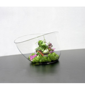 Prix €58.00 HTConditionnement : 100BGC8525 cl transparent PS bowl with beautiful undulating curves. A practical lid, adapted to its original shape, has a flat surface for presentation and vertical storage. The Organic range of bowls comes in 3 sizes: - BGC25 : 111 x 97 x h 66mm, 25 cl and lid CBG25 - BGC55 : 144 x 125 x h 85mm, 55 cl and lid CBG55 - BGC85 : 166 x 144 x h 98mm, 85 cl and lid CBG85 Made in France, it is reusable and recyclable. -