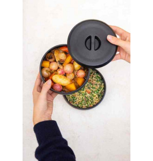 Prix €23.80 HTConditionnement : 18CVB110Bamboo lid with seal suitable for the 35 and 55 cl Bento glass bowls BBV35 and BBV55 . In the stacked version, only one lid is needed. It's safe to transport and can be used for a wide range of presentations. It's washable and reusable. -