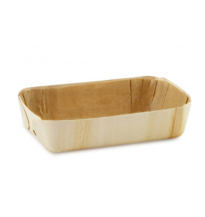 Prix €26.70 HTConditionnement : 60BWB220120cl poplar wood container with greaseproof paper tray. The open corners allow the heat to circulate, making this tray perfectly suited to baking (bread, cakes, gratins...) and microwaving. Practical, there's no need to change containers between baking and selling ! -