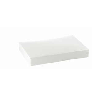 Prix €29.90 HTConditionnement : 25CTG42Luxe white catering box in lightly embossed cardboard, ideal for lunch or dinner cocktails. With its front opening and hinged lid, it's easy to display serving trays previously filled with sweet or savoury appetizers. -