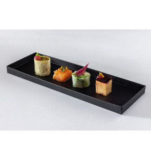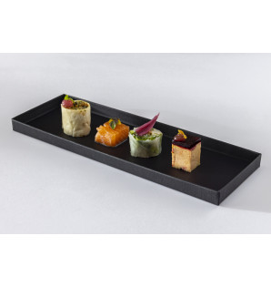 Prix €52.45 HTConditionnement : 25PATXIBlack Textura tray, Atlas 1/1 format, with a matt slate texture effect on all surfaces: base + edges. High quality, washable (60°C) and reusable! High quality, washable and reusable! It can be closed with a transparent lid CT11. -