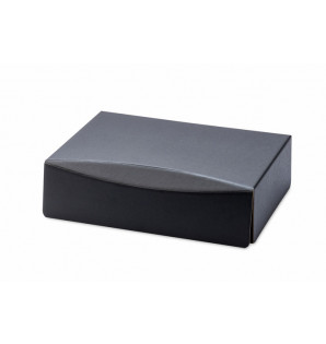 Prix €65.60 HTConditionnement : 50PCL27Top-of-the-range Atlas 1/4 tray in black cardboard with straight edges. Its satin-finish surface and textured exterior give it a refined, high-end design. For perfect hygiene and safe transport, it comes with a transparent lid (h40 mm) CPL27. Suitable for food contact. -