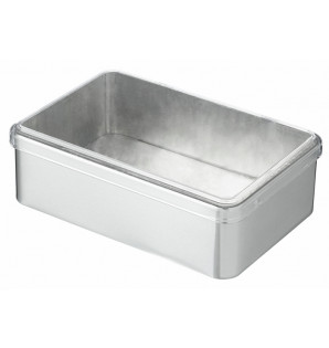 Prix €38.30 HTConditionnement : 10BBA19Metal bento lunch box with transparent PS hinged lid. Its sugar-box-style format is very practical and original for take-away sales of mini sandwiches, cakes or even mini verrines. Made in France, it is reusable and recyclable. -