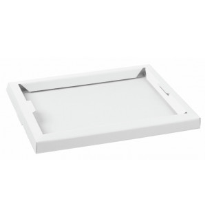 White cardboard lid with PET window, suitable for Thema meal trays. To attach it, simply insert it inside a Thema base and clip on two sides. It can be recycled. Delivered flat (dimensions: 440x390 mm). Thema lids are available in several colours: - Mandarin CTHM - Vanilla CTHVA - Apple green CTHVP - White with window CTHF100 - Reversible black or fuchsia CTHF - Kraft CTHK