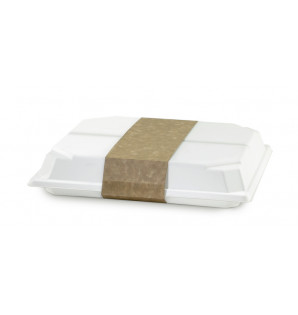 Bagasse lid to match the Quadra meal tray in the same material QF310 . For secure transport, add a kraft ring BQK9 in a contrasting colour to the white unit.