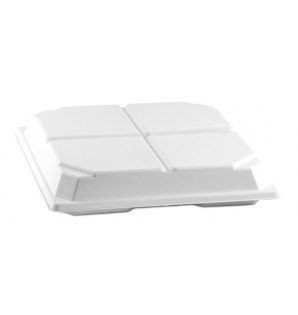 Transparent partitioned lid in recycled and recyclable PET, suitable for Quadra meal trays in PS AP310 or bagasse QF310 . Enables each of the tray's 5 compartments to be isolated.