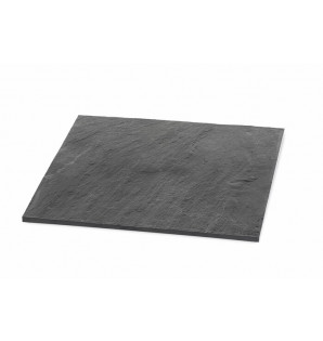 Prix €68.50 HT Prix de base €77.50 HTConditionnement : 50AT270Large black square plate with slate-effect texture. With no rim, this plate can also be used as a presentation tray. High-quality and sturdy, it is made of washable, reusable and recyclable PS. Without rim, this plate can also be used as a presentation tray. A transparent lid is available ( CT27 ). -