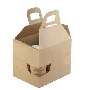 Prix €100.35 HTConditionnement : 100SB220Modular cardboard box to suit all your needs. A top opening makes it easy to fill and its two handles keep it closed during transport. 4 cut-outs can be used to quickly attach a variety of objects: a small water bottle, a can, cups, a sandwich, etc. - 3 cut-outs to hold Ø75 mm containers (minimum wedge height 50 mm) - 1 side cut-out, 60 mm wide, for holding a drink. -