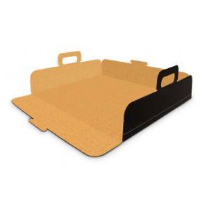 Price €27.00 VAT excl.Unit per box : 50CBK31Multi-purpose wedge to take away or deliver an individual meal. For transport, it is adapted to the case BKB33 . Holds 2 containers + 1 glass: - 2 perforations Ø82 to Ø97 mm ( BKW45 or BKW26 ) - 1 Ø55 mm pre-punched hole for 1 glass (10 cl cup or XGV016 counter). The wedge is recyclable and made in Europe. -
