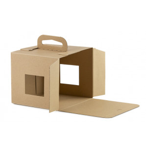 Price €91.95 VAT excl.Unit per box : 100CBK17Kraft cardboard box with two side openings and a fold-down handle for carrying up to 4 stackable plates: Up to 2 Woodbox 1 L WB160XL Up to 3 white containers 75cl BN155 Up to 3 Kraft containers 1L BNK160 Up to 3 Cubik plates 60cl BCU60C / BCU60N Up to 4 Bento plates 55cl AB170 Up to 4 Bodeglass plates 70cl BDG170 / BDG170P -