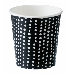 10 cl paper/PE cup, black exterior with white polka dots. A bagasse lid is available to keep the drink hotter for longer and make it easier to transport CV63F . Aroma to Go also exists in 20 cl XGCA20