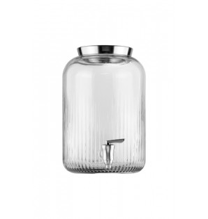 Prix €66.55 HTConditionnement : 1DBV7Large 7-litre glass drinking fountain with high-quality stainless steel lid and tap. A stainless steel and black melamine drip-stop SGN95 can be placed under the tap, to ensure impeccable, hygienic service. Easy to wash and reusable. -