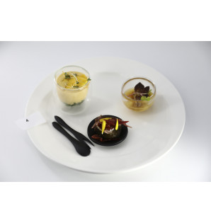 Price €51.15 VAT excl.Unit per box : 150MC8NHigh-quality, reusable black bamboo mini spoon. It can be combined with the matching mini fork MF8N . Perfect for chic, natural receptions or for serving espresso coffee. -