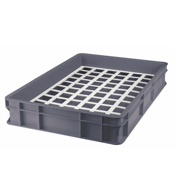 Large white cardboard wedge, to fit into a 600x400mm Euronorm box AP6417. The 60 cells measuring 40x40 mm fit our Kova 6cl verrines: KV6C, KV6N, KV6F, KN60