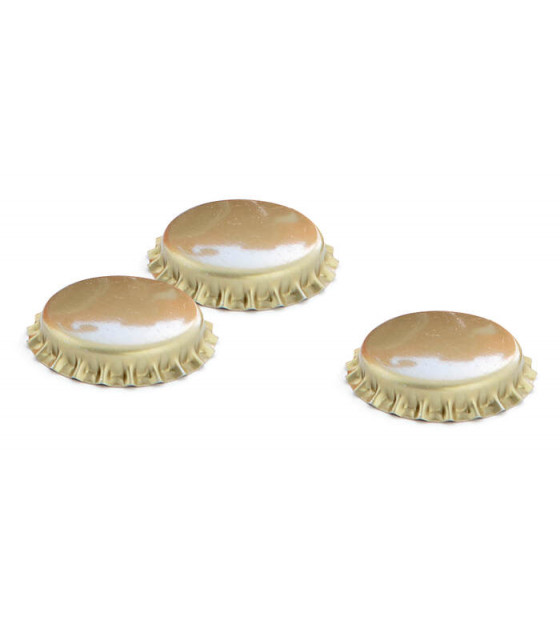 Gold-coloured metal crown cap to be crimped onto our BGT20 20cl Ginto bottles. Suitable for all regular beer bottles.