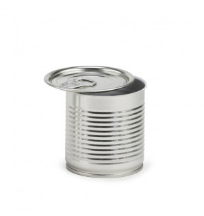 Prix €37.45 HTConditionnement : 60TCM25Grey metal can with white varnish interior (to prevent oxidation) and stand-up lid. Fun and practical, it offers original and innovative ways of presenting food: chips, vegetable sticks or sweets. It's reusable and recyclable. Tin Can is available in 25 cl TCM25 and 40 cl TCM40 . -