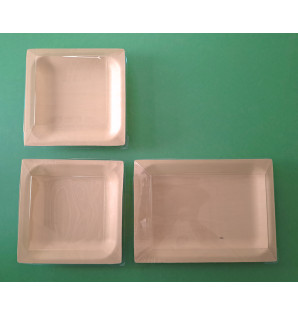Prix €45.00 HTConditionnement : 100KITBCSCWooden Cubik plates are made from a thin sheet of wood that gives a natural, authentic look to your meal formulas. Reheatable in the microwave or oven, these plates fit all our Thema meal trays. Version C kits, KITBC and KITBCSC , with or without RPET lid (h30 mm), consist of : - 1 plate 180x130xh15mm ACB18 , lid ACC18 - 1 plates 130x130xh15mm ACB13 , lid ACC13 - 2 plates ACB10 , lid ACC6 -