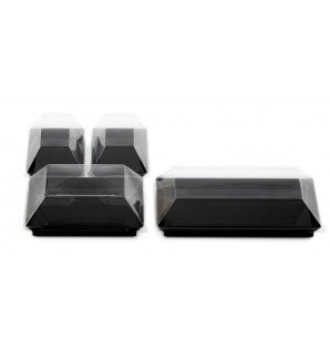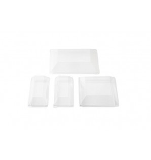 Prix €193.20 HTConditionnement : 100KITVCCubik tableware set in transparent PS with RPET lids (h30 mm), consisting of: - 1 plate 180x130 mm ACU18C and lid ACC18 - 1 plates 130x130 mm ACU13C and lid ACC13 - 2 plates100x100xh15mm ACU10C and lids ACC10 This kit fits our Thema meal trays, and is also available is also available in black PS KITVCN -