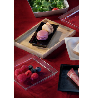 The Cubik range of plates is also available in black PS, bamboo, wood, bagasse and cardboard.