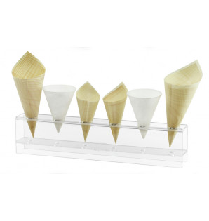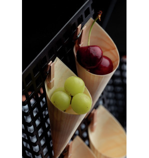 Cone made from a thin sheet of folded wood, 125 mm high. Can be used in the oven, microwave or freezer. Not suitable for liquids. For original displays, think of our UNI displays! Wooden cone also available CBS180