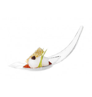 Prix €61.75 HT Prix de base €75.00 HTConditionnement : 100MCZ10Stainless steel aperitif spoon with curved handle, for elegant presentation of appetizers. Washable and reusable. -