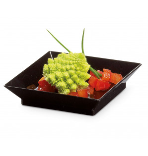 Prix €34.40 HTConditionnement : 200ATN6Mini black dish with a slate-effect texture. Made from PS, it can be reused and recycled. Ideal for appetizers. -