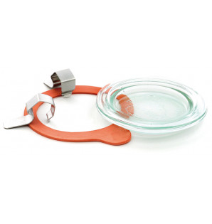 Glass lid Ø60 mm, suitable for Boko 8 cl BOK80 and 14cl BOK14 . This lid is used with a rubber seal JOINT6 and two stainless steel clips CLIP2 , sold separately, to ensure a hermetic seal.