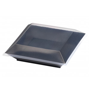 Prix €49.75 HT Prix de base €59.35 HTConditionnement : 100BCU60NCubik square soup plate, 60 cl capacity. Made of black PP, it is recyclable and reusable. Its lid is sold separately CB17P. This model is also available in crystal PS BCU60C and its PEt lid CBC17 -