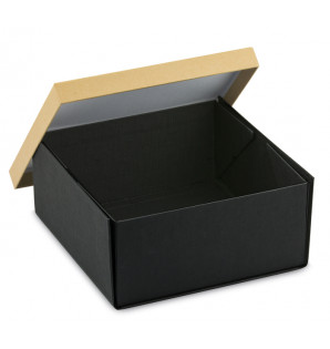Prix €49.10 HT Prix de base €59.55 HTConditionnement : 15CFA20NKHigh-quality black box made in France from compact recyclable cardboard. Supplied flat-packed, it's quick and easy to assemble with adhesive strips securing everything in place. The kraft lid can also be slipped under the box for two-tone presentations. -