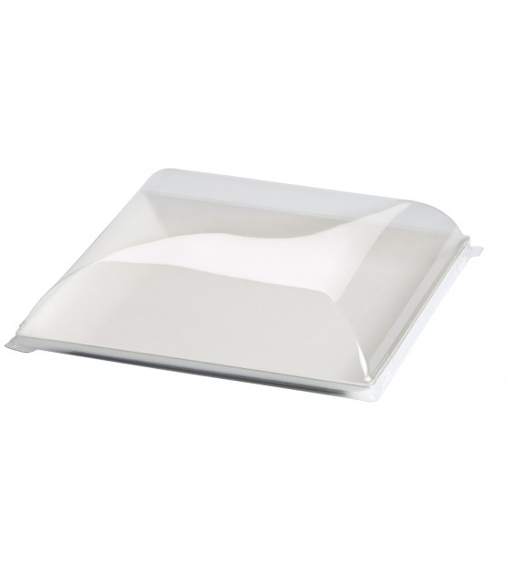 Transparent lid in rPET (recycled and recyclable), 4cm high, to fit the square bagasse plate from the Komodo range AK180.