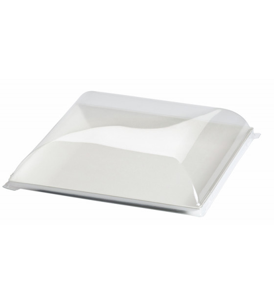 Transparent lid in rPET (recycled and recyclable), 4cm high, to fit the square bagasse plate from the Komodo range