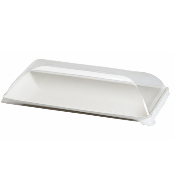 Transparent lid in rPET (recycled and recyclable), 4cm high, to fit the Komodo rectangular bagasse plate AK918