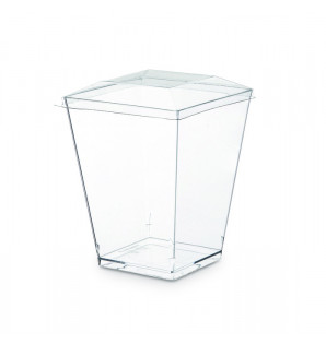 Lid in transparent, recycled and recyclable rPET, suitable for the Kova 16 cl PS verrine KV16.