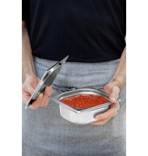 Indispensable equipment for professional kitchens, stainless steel 1/6 Gastronorm containers enable you to cook, store and transport your food, present your preparations and easily serve them. Whether in the dining room or in the kitchen, they are suitable for both hot and cold preparations. As stainless steel is a perfect conductor of heat, the trays can be used in ovens up to 250°C, in bain-marie to keep food hot, but also for temporarily cold conversation. Hygienic, lightweight, dimensionally stable (reinforced edges) and easy to clean, they are dishwasher-safe. Easy to stack (and unstack), they save space in your storage area. Made from 201 stainless steel, they are durable and recyclable at the end of their life. The lids, available with or without handles, keep your preparations warm and protect them during transport. This equipment meets the needs and standards of restaurants, self-service outlets, food trucks, pizzerias, salad bars, sandwich shops...