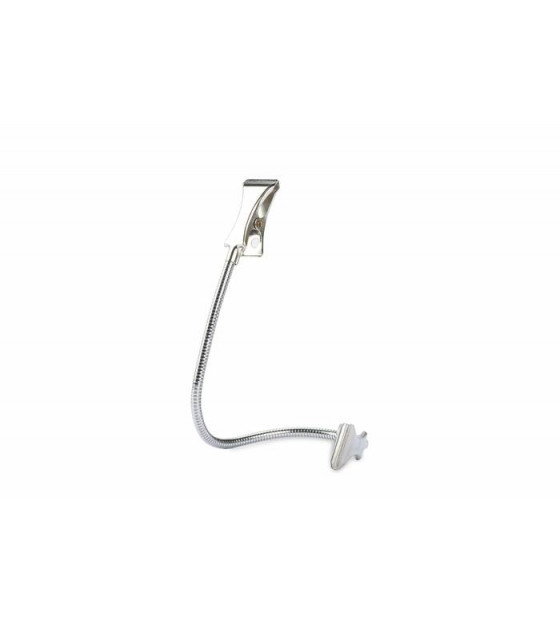 Chrome-plated, flexible label holder with two wide-open clips at each end: