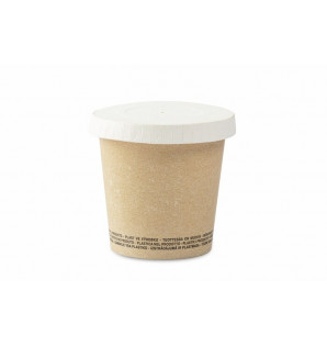 10cl kraft cardboard cup for hot and cold drinks. It closes with a flat cardboard lid
